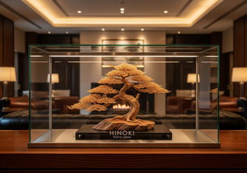 While it captures the striking beauty of a living bonsai, it requires no maintenance, thanks to its all-wood design. The powerful silhouette of the bonsai, paired with the natural aroma of hinoki, brings a refined, tranquil presence to any space.